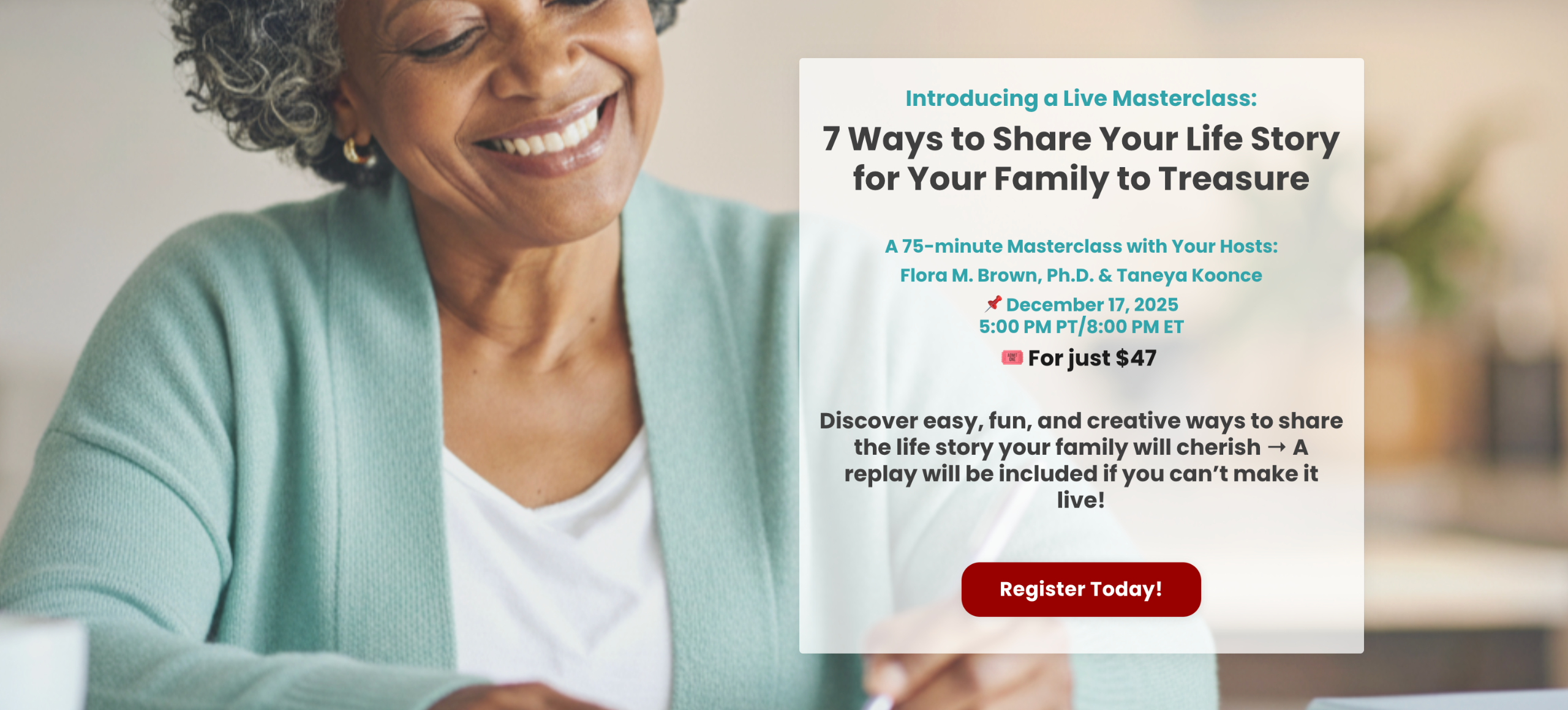 A quick, powerful 18-minute video that shifts mindset, silences self-doubt, and helps you begin writing your life story with confidence and clarity. Plus, enjoy four thoughtful bonuses .